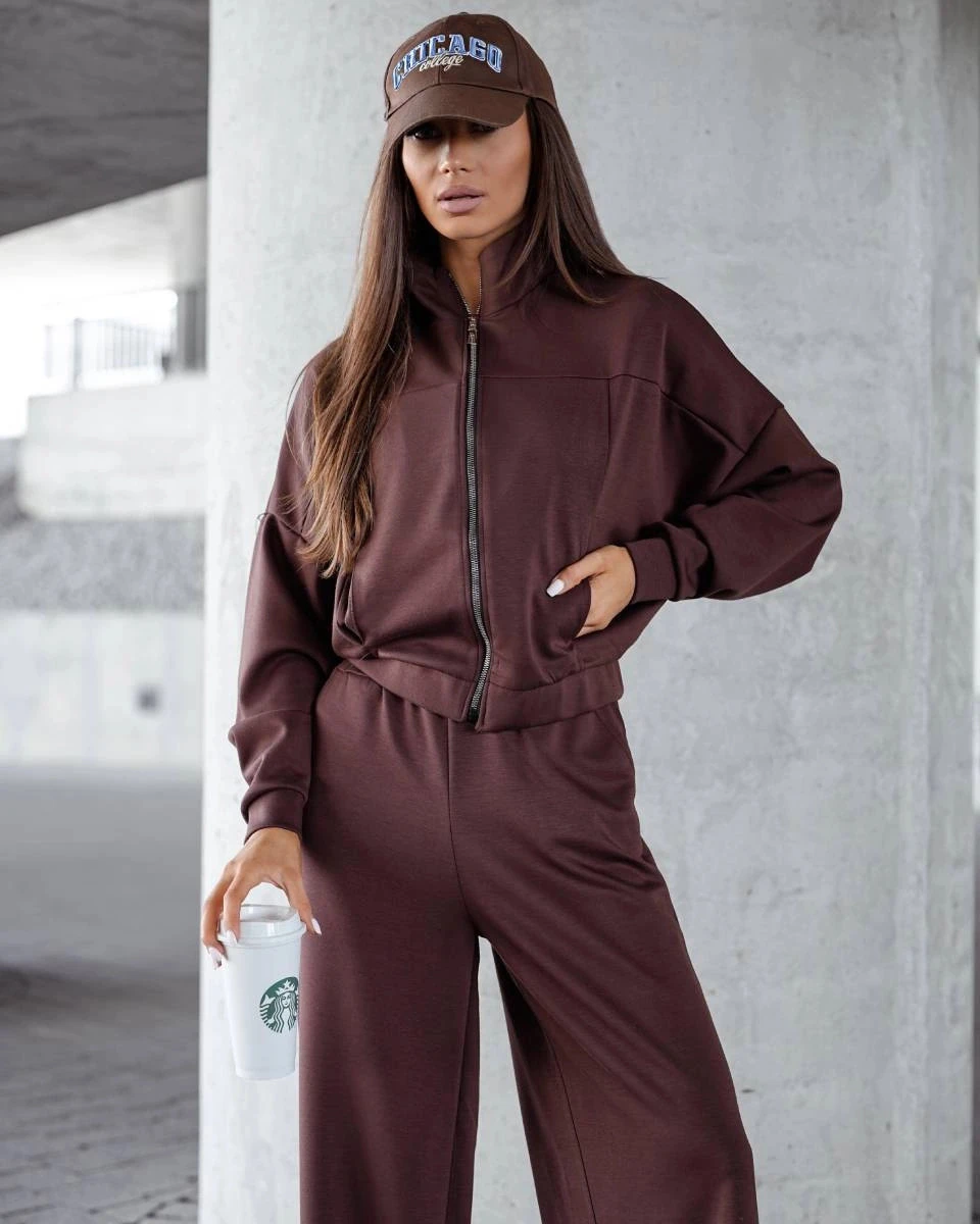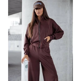 Dámský komplet v čokoládové barvě - mikina se stojáčkem a široké kalhoty (821109)