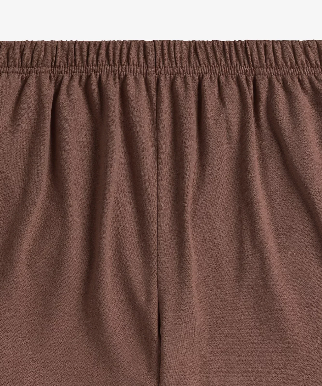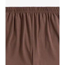 Nasz wielozadaniowy zestaw to koszulka i szorty w odcieniu ciemnego cappuccino. Koszulka ma luźny, nieco oversize’owy wręcz krój, krótkie rękawki oraz okrągłe wycięcie przy szyi. W szortach uwagę zwracają dość krótkie nogawki, praktyczne kieszenie po bokach oraz miękka i nieuciskająca ciała guma w talii. Tak koszulka, jak i szorty ozdobione są małym logo Atlantic po lewej stronie.