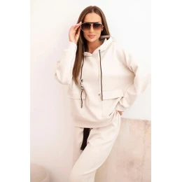 Komplet dámský máslový mikina s kapucí a kalhoty s páskem béžový