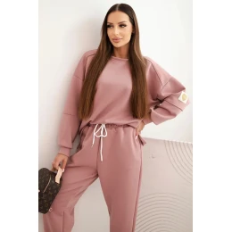 Stylový dámský komplet, který spojuje pohodlí s módním designem. Mikina s efektním, lesklým motivem na přední straně přitahuje pohledy a dodává celé stylizaci výjimečný charakter. Kalhoty s jednoduchým střihem a elastickým pasem a šňůrkou zajišťují pohodlí a volnost pohybu.