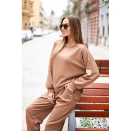 Komplet dámský máslový s volnou mikinou a kalhotami s nápisem LOVE tmavě camelový