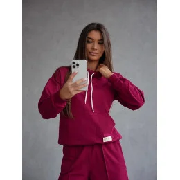 Teplákový komplet ve vínové bordó barvě - mikina se stojáčkem a kalhoty (82162)