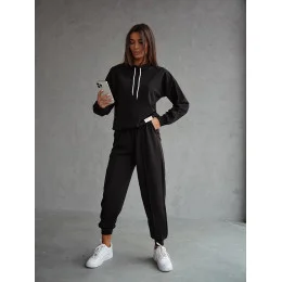 Černý dámský teplákový komplet - mikina se stojáčkem a kalhoty (82162)