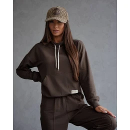 Teplákový komplet v čokoládové barvě - mikina se stojáčkem a kalhoty (82162)