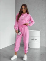Růžový dámský teplákový komplet - mikina se stojáčkem a kalhoty (82162)