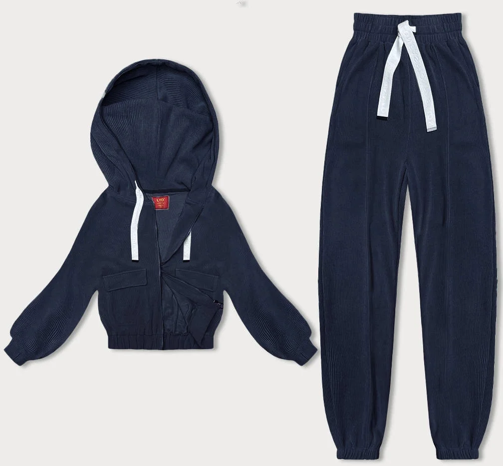 Tmavě modrý žebrovaný teplákový komplet (AMG-335A)