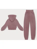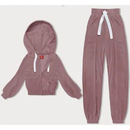 Růžový žebrovaný teplákový komplet (AMG-335A)