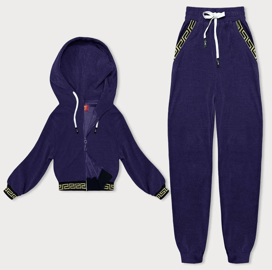 Teplákový žebrovaný komplet ve švestkové barvě s ozdobnými stahovacími lemy (AMG-345A)