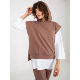 Hnědá třídílná souprava pro volný čas s kalhotami .