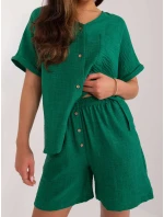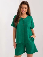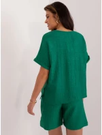 Tmavě zelený dámský letní komplet s halenkou s rozparky .