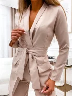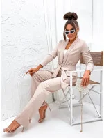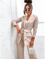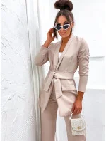 Béžový dámský komplet - volné sako a široké kalhoty (8167)
