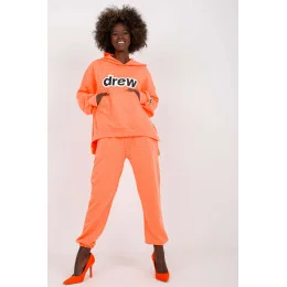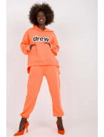 Dámská tepláková souprava sestávající z mikiny a kalhot. Mikina s dlouhými rukávy, kapucí a klokaní kapsou na přední straně. Dlouhé kalhoty s pružným pasem a nakládanými kapsami.