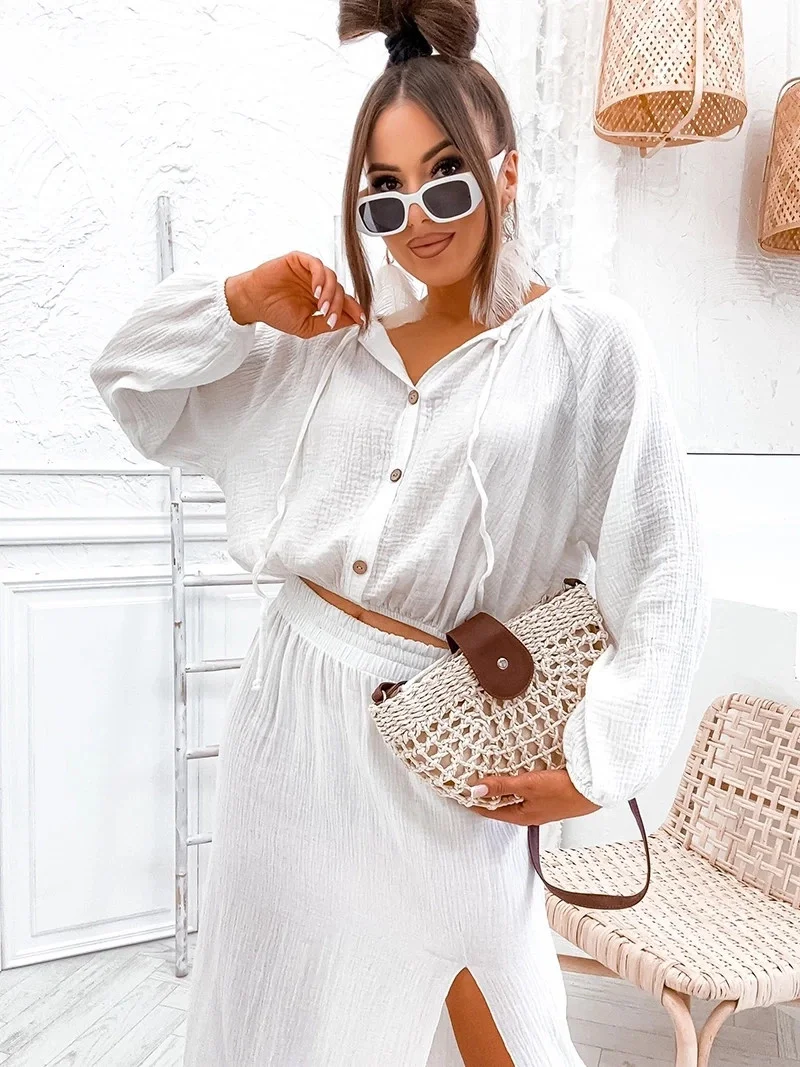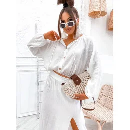 Mušelínový dámský komplet v barvě ecru - halenka a sukně (8290)