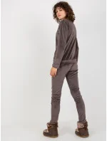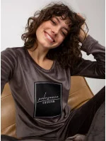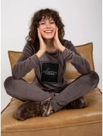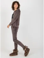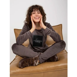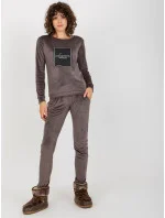 Tmavě šedá dámská velurová souprava s potiskem .