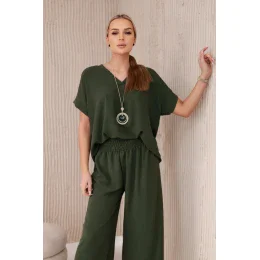 Komplet s náhrdelníkem halenka + kalhoty khaki
