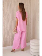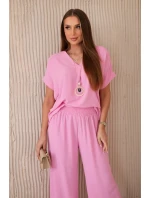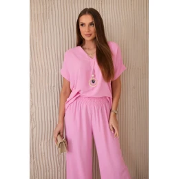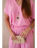 Komplet s náhrdelníkem halenka + kalhoty světle růžová