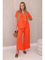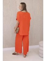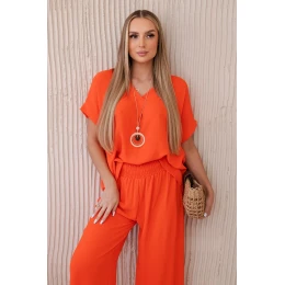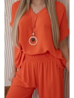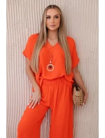 Komplet s náhrdelníkem halenka + kalhoty tmavě oranžová