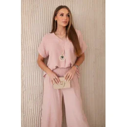 Komplet s náhrdelníkem halenka + kalhoty tmavě pudrově růžová