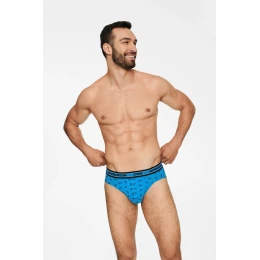Pohodlné kalhotky HENDERSON BOOST se zajímavou barevnou kombinací a netradičním vzorem. Pár se skládá z šedých hladkých slipů a modrých slipů s celoplošným potiskem motorky. Mají široký elastický pas s logem značky.