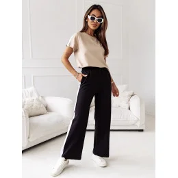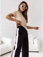 Béžový dámský sportovní komplet - oversize tričko t-shirt a teplákové kalhoty (VE89)