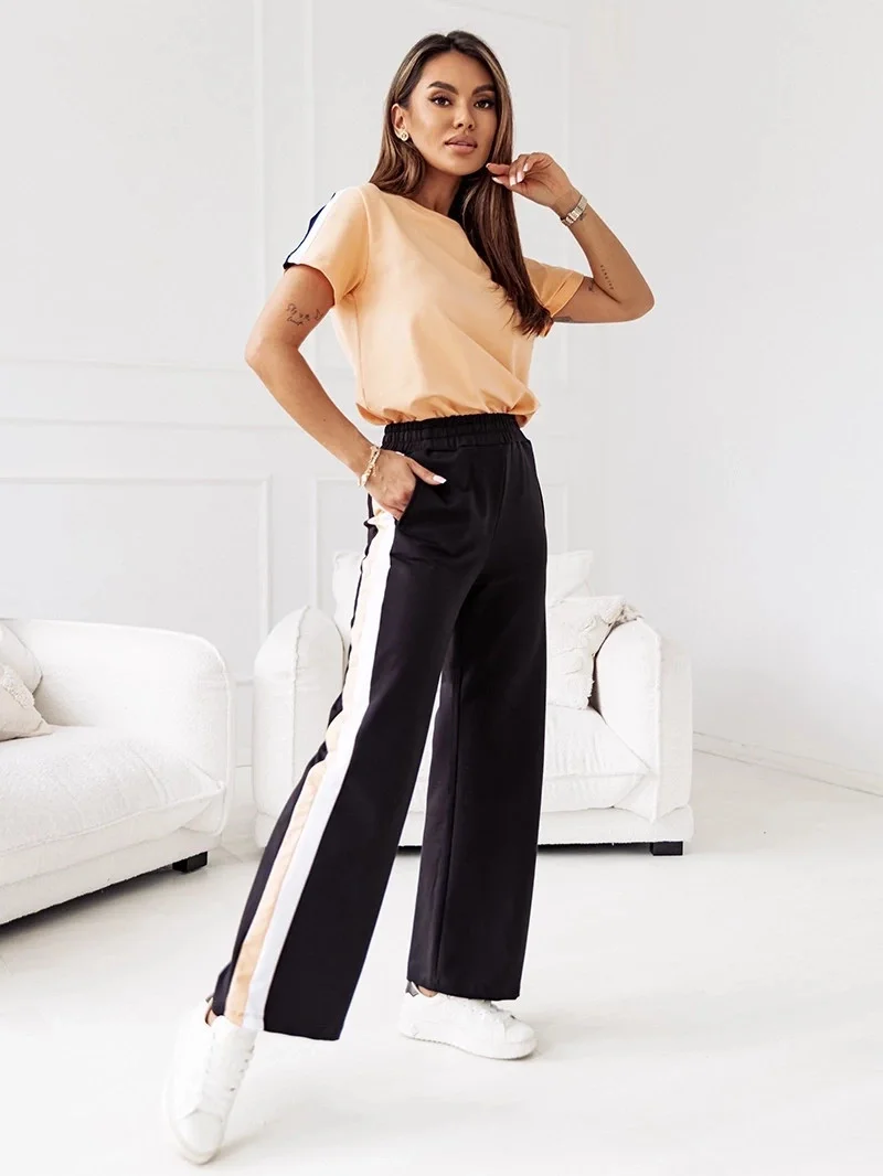 Dámský sportovní komplet v broskvové barvě - oversize tričko t-shirt a teplákové kalhoty (VE89)