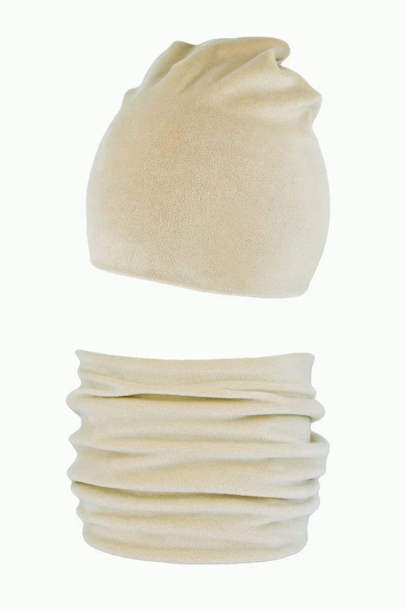 Dámská velurová souprava skládající se z hladké čepice a šusťáku. Mimořádně měkký a příjemný na dotek, dobře prokreslený materiál. Složení: 100% polyester.