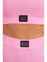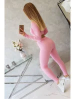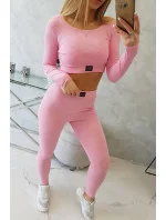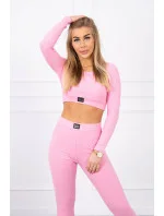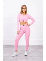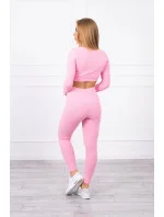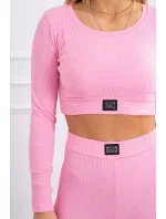 Komplet z bluzką top prążkowany jasny różowy