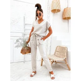 Béžový dámský komplet se lnem (751)