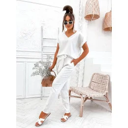 Dámský komplet v barvě ecru se lnem (751)