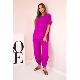 Komplet z viskózy halenka + kalhoty tmavě fialová