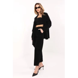 Stylové dámské štručkové kalhoty typu carrot, které spojují pohodlí s nadčasovým, ležérním stylem. Jsou ideální volbou na každý den, hodí se jak do městských outfitů, tak i do více propracovaných pracovních setů. Model je vyroben z vysoce kvalitní bavlny s přídavkem elastanu, co zaručuje pohodlí a jemnou pružnost materiálu. Hladký vzor zdůrazňuje univerzální charakter kalhot, zatímco štručková faktura jim dodává módní, lehce retro akcent. Kalhoty mají vysoký pas, který krásně zdůrazňuje pas a opticky prodlužuje postavu. Střih carrot s zužujícími se nohavicemi poskytuje pohodlí v bocích a stehnech a zároveň dodává celkovému vzhledu moderní tvar. Zapínání na zip a knoflík zaručuje pohodlí a stabilní přizpůsobení. Praktické boční kapsy zvyšují funkčnost modelu. Je to skvělá volba pro ženy, které ocení pohodlí, styl a univerzálnost v každodenních outfitcích.