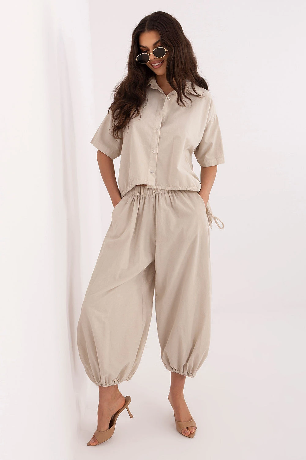 Stylové dámské kluče šusťákové s módním padákovým střihem, které se skvěle hodí do každodenních casualových stylizací. Hladký materiál jim dodává univerzální charakter, díky čemuž je snadno kombinujete s různými kousky šatníku. Vyrobené z vysoce kvalitní bavlny, jsou příjemné na dotek a zajišťují komfort nošení po celý den. Vysoký pas a všitá guma poskytují pohodlné přizpůsobení a zvýrazňují pas. Nohavice o délce 7/8 zakončené elastickými manžetami dodávají celkovému vzhledu moderní, sportovně-městský styl. Další výhodou jsou praktické postranní kapsy, které zvyšují funkčnost kalhot.