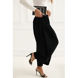Dámské sametové kalhoty s volným střihem typu Aladin, ideální na každodenní nošení. Vyrobené z měkké a příjemné bavlny, poskytují pohodlí a prodyšnost. Model s vysokým pasem a gumou v pase, která se přizpůsobí postavě a zaručuje pohodlí po celý den. Široké nohavice s délkou 7/8 dodávají celku lehkost a módní charakter. Kalhoty v hladkém vzoru, bez zapínání a kapes, co podtrhuje jejich minimalistický styl a uvolněný, nenásilný vzhled.