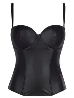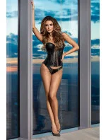 | Černý korzet V-8327 zaujme moderním střihem, je vyroben z jemné matné látky imitující latex |
