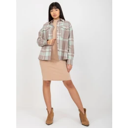 Tmavě béžová volná kostkovaná košile s delšími zády .