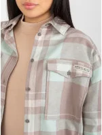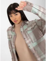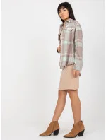 Tmavě béžová volná kostkovaná košile s delšími zády .