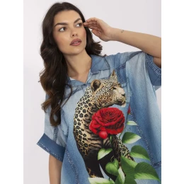 Rozměry košile jedné velikosti měřené na plocho: šířka v podpaží - 82 cm, celková délka (přední díl) - 65 cm, délka rukávu - 34 cm (od švu), celková délka (zadní díl) - 76 cm .