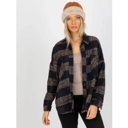 Námořnicky modrá a tmavě šedá kostkovaná vrchní košile s kapsami .