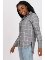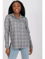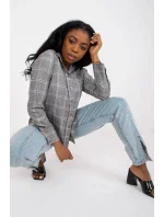 Šedá dámská kostkovaná košile s dlouhými rukávy a zapínáním na knoflíky.