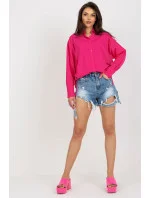 Dámská košile volného střihu s dlouhými rukávy, zapínání na knoflíky. Žebrování na bocích košile.
