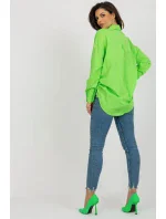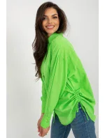 Dámská košile volného střihu s dlouhými rukávy, zapínání na knoflíky. Žebrování na bocích košile.