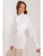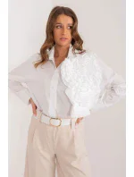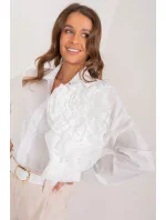 Klasická košile je esencí elegance a profesionality, ideální pro každý den v kanceláři nebo na obchodní schůzky. Její pečlivě propracovaný design a jedinečné detaily z ní činí nepostradatelný kousek dámského šatníku. Klasický styl této košile podtrhuje eleganci, takže je ideální volbou pro pracovní i formální příležitosti. Je vyrobena z vysoce kvalitní bavlny s hladkým omakem, poskytuje pohodlné nošení a odolnou tkaninu. Díky standardní délce a dlouhým rukávům je košile univerzální a perfektně funguje po celý rok. Límeček a knoflíková léga jí dodávají klasický vzhled a podtrhují formální vzhled. Jedinečným ozdobným prvkem jsou vyšívané květiny a ozdobné zirkony umístěné na manžetách. Tyto jemné detaily dodávají košili nádech ženské jemnosti, přičemž příliš nevtíravě nezdůrazňují její elegantní charakter. Tato klasická košile je spojením tradice a modernosti, což z ní činí nepostradatelnou součást dámského pracovního šatníku, kde se elegance snoubí s jemností.