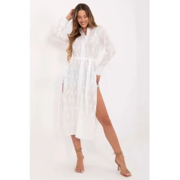 Dámská košile s prodlouženým střihem je volný model spojující klasický tvar s ženskými detaily. Vyrobená z vysoce kvalitní bavlny poskytuje pohodlí a prodyšnost, ideální na každý den. Dlouhý střih s rozparky po stranách dodává lehkost a volnost pohybů, zatímco vyšívaný květinový motiv přináší jemný, romantický nádech. Košile se zapíná na knoflíky, má klasický límeček a dlouhý rukáv, skvěle se hodí jak samostatně, tak jako nástroj. Přiložený pásek k uvázání umožňuje zdůraznit pas a tvarovat postavu podle preference. Skvělý návrh pro každodenní, pohodlné stylizace s nádechem ženské elegance.