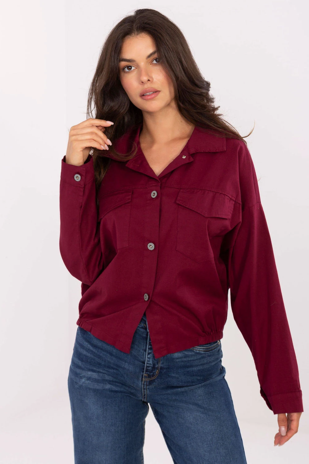 Dámská košile s kapsami je pohodlný a stylový návrh pro každodenní outfit. Vyrobená z vysoké kvality bavlny s přídavkem elastanu, zajistí pohodlí, prodyšnost a perfektní přizpůsobení postavě. Hladký materiál a klasické zapínání na knoflíky jí dodávají univerzální charakter, který skvěle zapadá do casualového stylu. Model s kratší délkou, dlouhým rukávem a límečkem má praktické kapsy na přední straně s klopami, které přidávají celku funkčnost. Na zádech v dolní části je vsazena gumička, díky čemuž se košile lépe přizpůsobuje postavě a decentně zdůrazňuje pas. Skvěle ladí s džíny, sukněmi nebo kraťasy, vytvářející pohodlný a módní outfit na každý den.