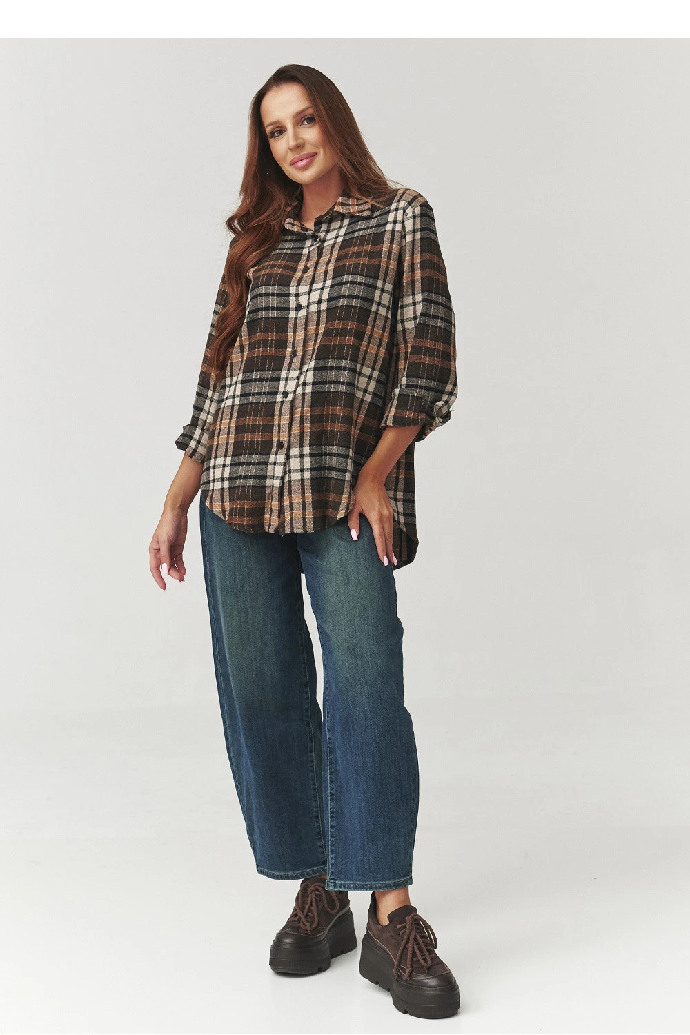 Existují oblečení, které nevyjdou z módy, a košile v kostkovaném vzoru jsou právě takovým klasikem, který stojí za to mít po ruce po celý rok. Naše nabídka je moderním pohledem na nadčasový vzor. Volný střih, lehce prodloužený zadek a měkká, příjemná na dotek látky vám zajistí, že ji zamilujete od prvního obléknutí. K dispozici v několika barevných variantách kostky od teplých, podzimních tónů po více decentní verze, hodí se jak do každodenních stylizací, tak do těch více uvolněných: s legíny, džíny nebo jako přehoz na tričko. Je to ideální košile na chladnější dny, nosit ji s botami, teniskami nebo dokonce s páskem v pasu, pokud rádi experimentujete s tvarem. Tato košile není jen základem mnoha stylizací. Spojuje v sobě uvolněnost, ženskost a pohodlí. Stačí ji jednou obléknout, abyste pochopili, proč kostka nikdy nevyjde z módy. Vyrobeno v Itálii.