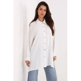 Klasická dámská košile v elegantním stylu je ideální volbou na každý den, do práce i na společenské události. Její hladký vzor zdůrazňuje nadčasový charakter a pečlivé provedení zaručuje skvělý vzhled v mnoha různých stylizacích. Model je vyroben z lehkého, příjemného polyesteru, který se dobře přizpůsobuje postavě. Prodloužený střih a jemné rozparky po stranách dodávají košili moderní vzhled a zajišťují volnost pohybu. Košile má dlouhý rukáv s jemným manžetem a nadýchané rukávy, které dodávají celku módní a výrazný akcent. Klasický límec a zapínání na knoflíky zdůrazňují elegantní charakter modelu. Jedná se o stylovou a funkční košili, ideální pro ženy, které oceňují spojení klasiky s moderními detaily.