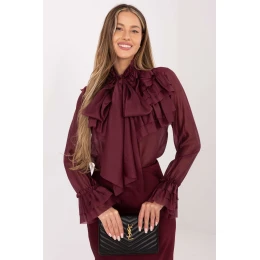 Elegantní dámská košile se stojkou, klasický model ideální na každý den, do práce a na slavnostní příležitosti. Vyrobená z vysoce kvalitní směsi tencelu a polyesteru, což zajišťuje jemnost, lehkost a pohodlí nošení, a zároveň elegantní, pečlivý vzhled. Model standardní délky se vyznačuje hladkým vzorem, který zdůrazňuje její nadčasový charakter. Dlouhé rukávy s volánem dodávají celku jemnou ženskost a jemnost, a stojka opticky prodlužuje siluetu a zdůrazňuje krk. Na přední straně košile je šněrovací žabot, který představuje elegantní detail, který dodává eleganci a jedinečný charakter. Košile má také knoflíkové zapínání, což usnadňuje její přizpůsobení a udržuje klasický střih. Jedná se o skvělý návrh pro ženy, které oceňují kombinaci elegance, pohodlí a jemných detailů ve svých každodenních i slavnostních stylizacích.