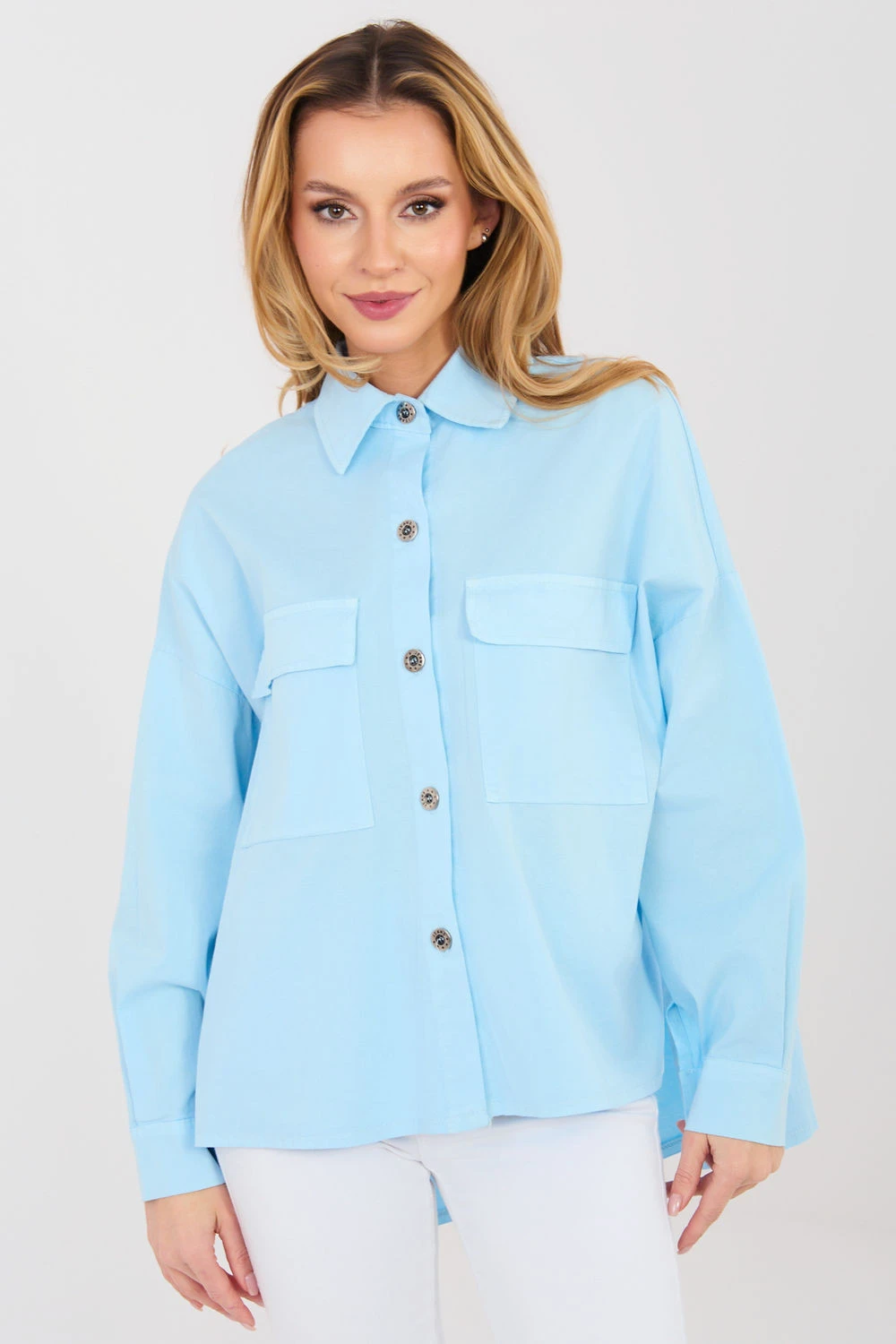 Univerzální dámská košile v casual stylu, ideální pro každodenní outfit. Vyrobena z příjemné bavlny s přídavkem elastanu, poskytuje pohodlí a volnost pohybu po celý den. Model standardní délky s lehce prodlouženým zády, který dodává moderní charakter a skvěle padne na postavě. Hladký vzor umožňuje snadné kombinování s kalhotami i legíny. Košile má dlouhý rukáv, klasický límec a knoflíkové zapínání. Na přední straně jsou přišité kapsy se štítky, které zdůrazňují casual styl a dodávají praktický prvek. Skvělá volba pro ženy, které ocení pohodlí, funkčnost a nadčasový design.