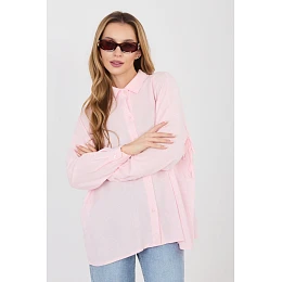 Dámská košile v casual stylu, která se skvěle hodí jak do každodenních outfitů, tak i do práce. Klasický, hladký vzor dělá tento model univerzálním a snadno kombinovatelným s různými kousky oblečení, od elegantních kalhot po džíny. Košile je vyrobena z vysoké kvality směsi lyocellu, bavlny a lnu, díky čemuž je materiál lehký, prodyšný a příjemný na nošení. Standardní délka umožňuje nošení košile jak zasunuté do kalhot nebo sukne, tak i volně. Model má klasický límeček a dlouhé rukávy, které zdůrazňují nadčasový charakter košile. Další výhodou je praktické šněrování na zádech, které umožňuje regulaci šířky košile a lepší přizpůsobení postavě, zároveň dodává celku jemný ženský akcent.