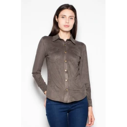Semišová košile s dlouhými rukávy a kovovými knoflíky. Model klasického střihu se skvěle hodí k přiléhavým kalhotám.